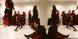 | Волшебные пассы. Главный хореограф балета Илико Сухишвили совершает своеобразный ритуал – направляет руками мелодию из дудука в сторону танцоров | |