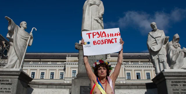 Движение Femen, прославившееся появлением топлесс в публичных местах, в своем стиле опротестовало грядущее повышение пенсионного возраста для женщин