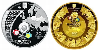 Национальный банк Украины собирается отчеканить к Евро-2012 две юбилейные монеты номиналом 20 и 500 гривен