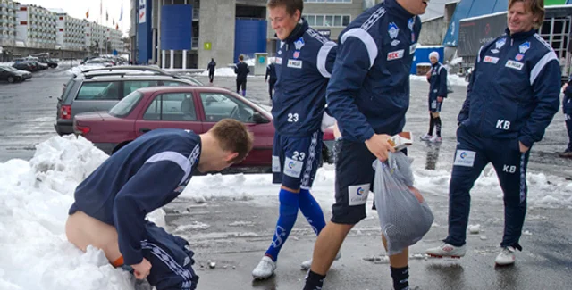 Главный тренер норвежского футбольного клуба "Олесунн" Четиль Рекдаль заставил игроков, которые плохо выполняли его задание на тренировке, снять штаны и сесть в сугроб