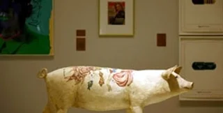 На выставке также представлены небольшие вещи известных западных художников - Барбары Хепворт (деревянная скульптура "Икона"), Пьеро Манцони (баночка с экскрементами автора), позолоченная копия писсуара, обессмерченного Марселем Дюшаном.