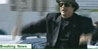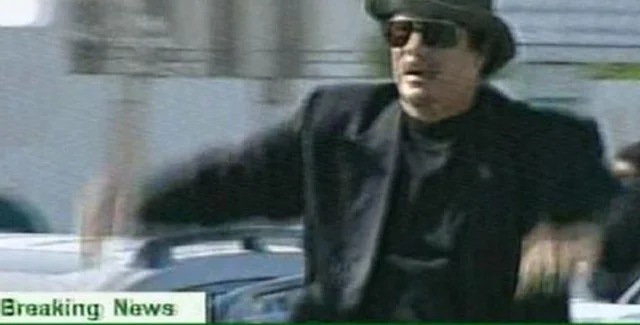На них видно, что ливийский лидер, одетый в темную одежду,находится в черном внедорожнике с открытым верхом. Он стоя приветствует своихсторонников. Автомобиль окружили десятки людей. В руках у них портреты Каддафии зеленые флаги, символизирующие правящий режим. Жители Триполи кричат лозунги,прославляющие лидера. Каддафи в ответ жестикулирует, показывая пальцами знак V- "виктория".