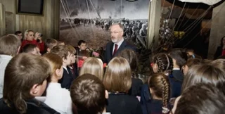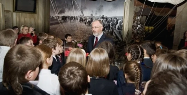 Министр образования Дмитрий Табачник 5 мая провел экскурсию по залам музея Великой Отечественной войны для учеников 5-х классов Лицея международных отношений №51 Киева