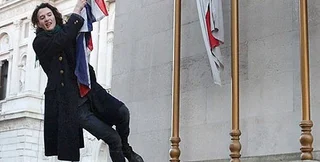 Внимание полиции, изучавшей фотографии беспорядков вгазетах, привлек молодой человек, раскачивавшийся на флаге. После опросасвидетелей и изучения дополнительных видеоматериалов полицейские заподозрили впроявлении вандализма Чарли Гилмора. Он был арестован 12 декабря и вполицейском участке признался в содеянном.