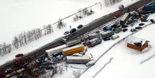 "Несколько человек до сих пор остаются заблокированными в искореженных автомобилях. В настоящее время слишком рано еще говорить о причинах аварии, но утром был снегопад, и дорога вся покрыта снегом", - сообщают представители полиции.