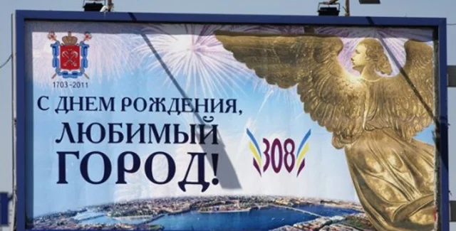 Петербургские власти напечатали ко Дню города плакаты, на которых изображен ангел Петропавловской крепости, лицом удивительно напоминающий российского премьера Владимира Путина.