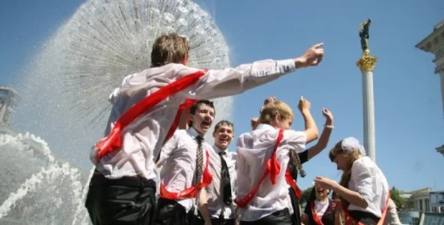 В Киеве выпускники традиционно купались в фонтанах на площади Независимости, радуя фотографов и шокируя представителей старшего поколения. В Донецке готовы к тому, что школьники будут плескаться в фонтанах до утра. Местный горводоканал предупредил, что 29-30 мая в день проведения выпускных балов городские фонтаны будут работать всю ночь.