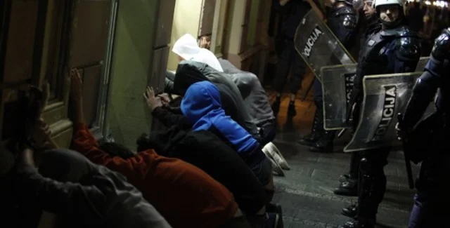 На митинг в центре Белграда пришли около десяти тысяч человек. Акция протеста переросла в беспорядки - небольшие группы молодых людей, чьи лица были закрыты масками, забросалиполицейских камнями, бутылкамии петардами.