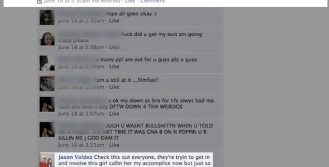Когда полицейские пришли за Вальдесом, он забаррикадировалсяв комнате отеля и начал писать в Facebook статусы о развитии ситуации. Вальдесуспел опубликовать шесть статусов и две фотографии с девушкой, которую он взялв заложницы.