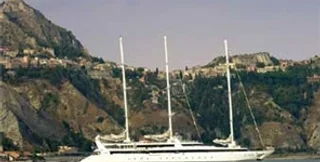 Трехмачтовая круизная яхта "Ле Понан" водоизмещением 850 тонн и длиной 88 метров способна перевозить до 64 пассажиров.