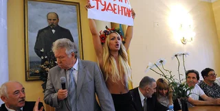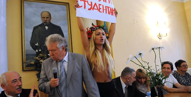 Сегодня активистка движения FEMEN Инна Шевченко сорвала церемонию вручения дипломов выпускникам-филологам в киевском университете имени Тараса Шевченко