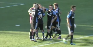 Голкипер футбольного клуба "Ерзквейкс" из города Сан Хосе Дэвид Бингхам в товарищеском матче против английского клуба "Вест Бромвич" забил гол