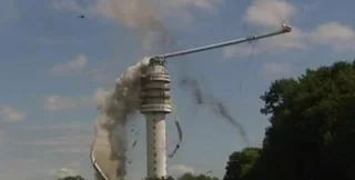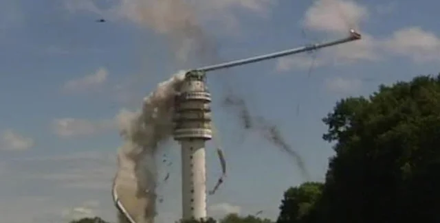 Короткое замыкание и возникший вслед за этим пожар привели к обрушению верхней части телерадиовещательной башни-передатчика в городе Хогерсмилде на востоке Нидерландов