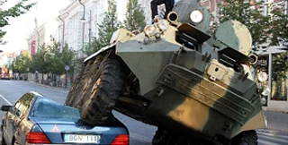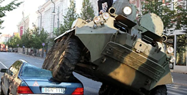 Как сообщает интернет-издание DELFI, Зуокас лично проехал на БТР по центру Вильнюса и на глазах у изумленной публики раздавил неправильно припаркованный на одной из улиц Mercedes.
