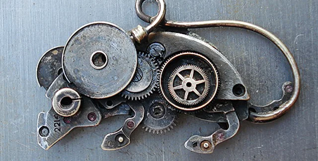 Киевлянин Алексей Бережной создает свои украшения – кулоны, серьги, кольца, браслеты и запонки без предварительных эскизов и из "всего, что не горит". То есть из стекла и металла, причем в ход идут шестеренки, пружины, колбы, гвозди и прочие мелкие детали. Впрочем, изредка Бережной использует и дерево, ведь именно с резьбы по дереву когда-то начиналось его творчество. Теперь украшения в стиле стимпанк (когда вещи напоминают старинные механизмы) можно купить не только на персональном блоге дизайнера, но и в нескольких киевских магазинах.