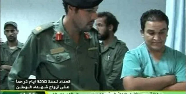 Ливийское телевидение во вторник продемонстрировало видеозапись, на которой сын Муаммара Каддафи Хамис, о гибели которого на прошлой неделе сообщили мятежники, посещает раненных при авианалете