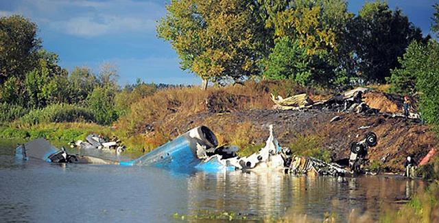 Около двух десятков болельщиков хоккейной команды "Локомотив", члены которой разбились при крушении самолета под Ярославлем, прибыли к месту происшествия в поселке Туношна