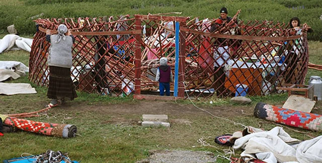 Жилье киргизов максимально приспособлено для кочевой жизни: юрту можно разобрать и погрузить на лошадь за один час, хотя это и нелегкая задача. Сначала ставят основу – деревянный каркас, затем стены покрывают циновками из чия – жесткого злака, поверх него накладывают толстые пластины из войлока, и жилище готово. Возле юрт часто можно увидеть фургоны и машины, а стоящий возле юрты "лексус" удивит разве что туристов. Да, глобализация уже добралась и сюда: телевизор, электричество от дизель-генератора и другие плоды цивилизации – вполне привычное явление.