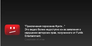 При попытке просмотреть удаленные ролики появляется сообщение: "Это видео более недоступно из-за заявления о нарушении авторских прав, полученного от Funtik Entertainment". Компания Funtik Entertainment в 2005 году заключила с "Союзмультфильмом" (с 2010 года – "Объединенная государственная киноколлекция") договор на использование коллекции советских мультфильмов в Интернете. В Google уточнили, что удаляют любой лицензионный контент, если поступит соответствующее требование от правообладателя.