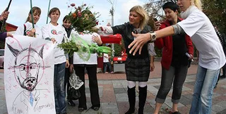 Сегодня, 28 сентября, возле Красного корпуса Киевского национального университета имени Тараса Шевченко, общественная инициатива "Оновлення країни" и "АнтиТабачна кампанія" провели акцию "Поціль в Табачника - врятуй освіту і науку України!"