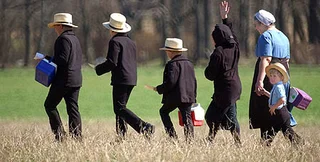 Жительнице села Марине еще нет тридцати. Но ей надо вдвое увеличить количество малышей. 15-20 детей у амишей - норма. У ее бабушки - триста внуков. Живут в голубых домах, по несколько поколений во дворе. Старшие следят за младшими. Поэтому в школе учатся только до восьмого класса.