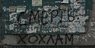 В Днепропетровске на стенах заборов, магазинов и остановок общественного транспорта появился лозунг "Смерть хохлам!"