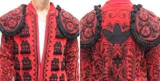 Олимпийка Torero Superstar Track Top напоминает короткий жилет с множеством кисточек и узорной вышивкой. "Пиратские" короткие штаны, как и у тореодора носятся с подтяжками, закреплены снизу и также украшены бахромой.