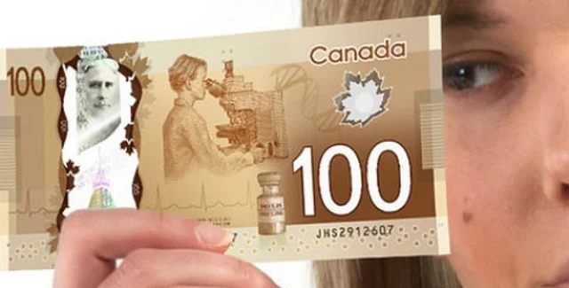 Специалист канадского Центробанка Мартин Уоррен рассказал, что одним из способов защиты новых купюр станет голограмма справа от портрета бывшего премьер-министра Канады Роберта Бордена, меняющая свой цвет при наклоне. Чуть выше ее помещена уменьшенная копия лица Бордена, выполненная на металлической вставке. Две различные и весьма сложные технологии изготовления сводят к минимуму возможность подделки, а если между портретами на фальшивых деньгах будет хоть малейшее различие, человеческий глаз его заметит, говорит Уоррен.