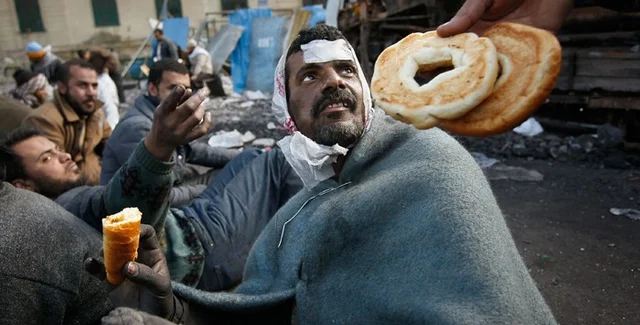 Местами Тахрир, несмотря на идущие в нескольких сотнях метрах ожесточенные столкновения, больше похож на рынок. Предприимчивые египтяне предлагают революционерам на передвижных латках и капотах машин минералку, сигареты, соки, лепешки по "слегка" завышенным ценам. Некоторые прямо на месте давят и продают свежие соки. Между тем, ряд неправительственных организаций бесплатно распространяет еду и воду, снабжает протестующих теплыми одеялами и медикаментами.