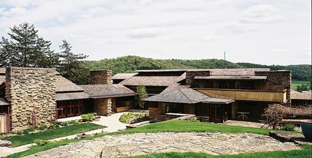 Другими известными сооружениями, спроектированными Райтом, являются музей Соломона Гуггенхайма в Нью-Йорке и и дом под названием "Fallingwater" в штате Пенсильвания.