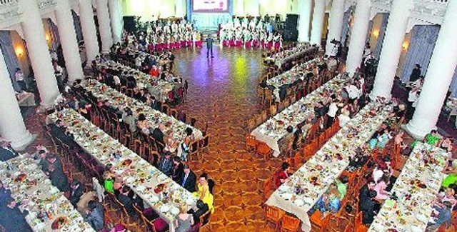Как пишет газета Сегодня, Министерство инфраструктуры Украины уже много лет в один из последних дней года проходит праздничный концерт для всех сотрудников, после него - легкий фуршет с вином, фруктами, бутербродами. Изюминка торжества - оркестр госспецслужбы транспорта (бывшие железнодорожные войска). "Это настоящие виртуозы, исполняют все - от классики до современной эстрады, - рассказали в пресс-службе министерства. - Дальше - празднуем по подразделениям, но уже за свои деньги. Заказываем столики в ресторане или кафе".