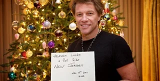 Вчера, 19 декабря, Бон Джови разместил на своей странице в Facebook фото, где он стоит на фоне новогодней елки, а в руках держит лист бумаги с надписью "Небеса выглядят как Нью-Джерси", датой и временем.