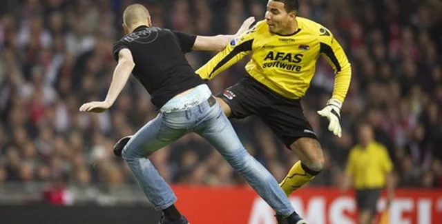 Вратарь голландского клуба "АЗ Алкмар" Эстебан Альвадаро ударил выбежавшего на поле и напавшего на него болельщика во время матча c "Аяксом" на Кубок Нидерландов по футболу