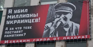 Как известно, 12 января в центре Запорожья был размещен очередной антисталинский билборд с фотографией Сталина, где тот делает пальцами "козу", а также с надписью: "Я убил миллионы украинцев! А за что тебе поставят памятник? Избавим город от позора".