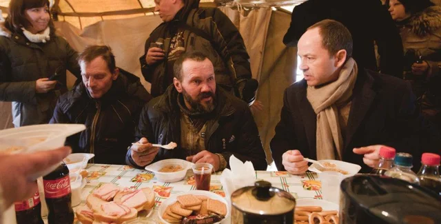 Поговорив с журналистами в палатке об активизации работы соцслужб в связи с морозами, Тигипко уже, было, собрался уходить, но тут патронажные сестры Красного креста предложили вице-премьеру каши. Министр не смог отказаться и сел поесть рядом с одним из бездомных - посетителей пункта.