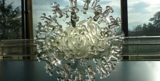 Британский художник Люк Джеррам, при содействии специалистов по вирусологии из Университета Бристоля, создает из стекла скульптуры опасных вирусов