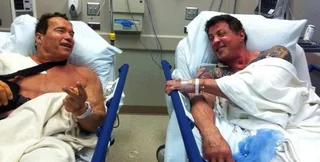 64-летний Шварценеггер разместил сегодня в интернете красноречивый снимок, на котором он и 65-летний Сталлоне лежат на больничных койках "бок о бок" и дружески общаются, ожидая помощи врачей, передает УНИАН.
