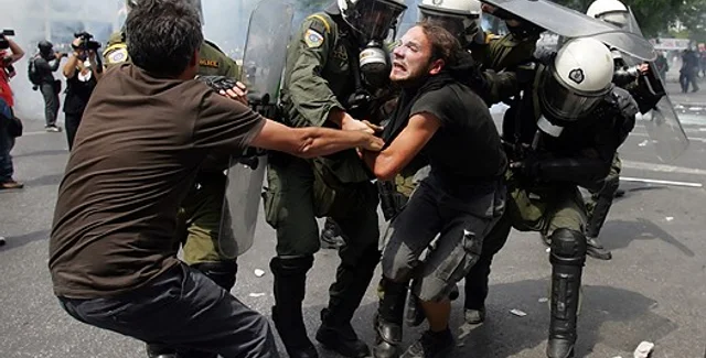 Полиция задержала в среду, 22 февраля, 60 человек во время митингов в центре Афин представителей профсоюзов и левых партий против кредитного соглашения с ЕС и МВФ