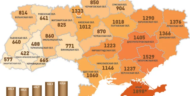 Меньше всего преступлений совершается в Ивано-Франковской (422 на 1 млн), Тернопольской (488) и Закарпатской (577) областях.