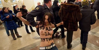 Три активистки украинского женского движения FEMEN провели в Москве свою акцию "Краду за Путина"