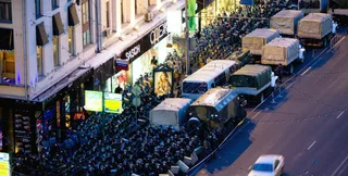 К настоящему времени задержаны до десяти человек, которые, выкрикивая антиправительственные лозунги, попытались прорваться на оцепленную территорию. Полиция требует от прохожих не задерживаться на тротуаре и проходить в метро, сообщает "Интерфакс".
