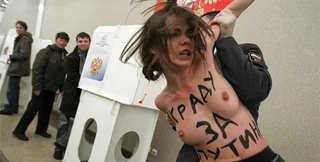 Одна из активисток украинского движения FEMEN, которую задержали 4 марта за обнажение на избирательном участке в Российской академии наук в Москве, депортировали в Украину