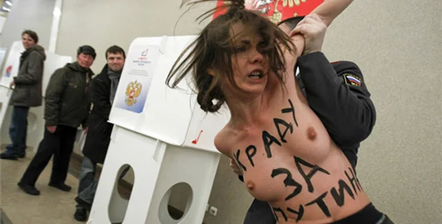 Через некоторое время после того, как председатель правительства покинул избирательный участок, туда забежали три девушки, обнажились до пояса и стали выкрикивать обвинения в адрес премьер-министра. Девушки были задержаны и доставлены в отдел полиции.