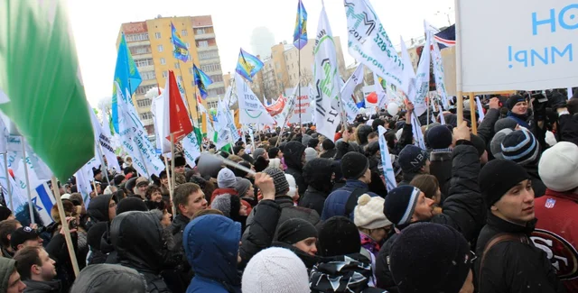 Тысячи человек собрались на площади в Екатериньурге выразить свое недовольство действиями министра экономики Михаила Максимова, который потребовал убрать с улиц рекламу МММ-2011