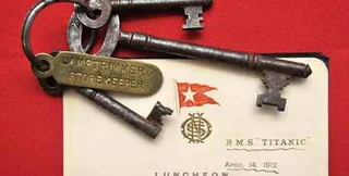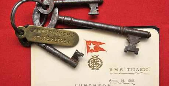 Еще одним любопытным лотом торгов станут ключи, которыми член экипажа Самуэль Хемминг открывал комнату, где хранились фонари для спасательных шлюпок. Капитан "Титаника" Эдвард Смит приказал ему обеспечить лампами все шлюпки. Несмотря на то, что Хемминг знал, что корабль затонет через 30 минут, он сделал несколько ходок за фонарями и в последний заход уже вынужден был плыть в ледяной воде. Эстимейт набора ключей составляет 50-60 тыс. фунтов.