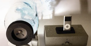 Идея использовать стеклянные банки в качестве динамиков родилась у дизайнера Игоря Томенчука еще в детстве. Однажды он разбил магнитолу, а уцелевший динамик примерил к обычной банке. Динамик подошел, к тому же оказалось, что стекло усиливает звук лучше, чем пластиковый корпус магнитолы. А вот мысль добавить к колонкам из четырехлитровых банок корпус из бетона у Игоря появилась недавно. Хотелось объединить несоединимые, на первый взгляд, материалы, признается дизайнер. У аудиосистемы есть разъемы для подключения iPod и iPhone, а также телевизора, радиоприемника и плеера, у которых имеется стереоразъем (TRS) 3,5 мм (1/8"). Томенчук подумывает о фабричном производстве стереосистемы, и тогда ее цена составит не менее $450.