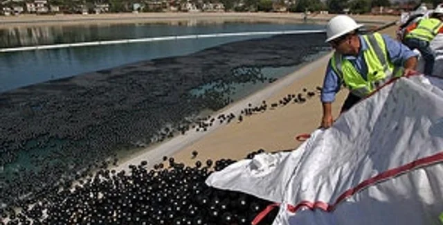 Помимо того, что этот способ предотвращает образование канцерогенных соединений, его можно применять для существенного уменьшения испарения водоемов и для снижения насыщения воды кислородом, чтобы воспрепятствовать размножению водорослей. Пока шары задействованы в двух водохранилищах на срок до 5 лет.