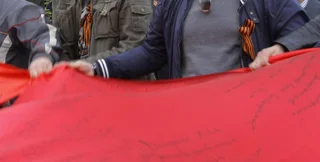 Как сообщается, каждая из сторон пыталась вырвать знамя, но в итоге флаг забрали правоохранители, а мужчину задержали.