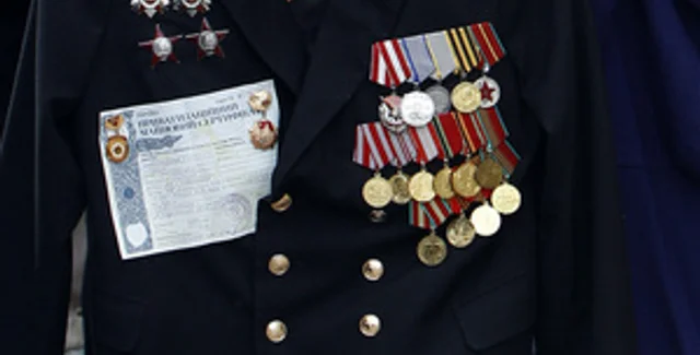 красные флаги и георгиевские ленты, которые появились преимущественно по