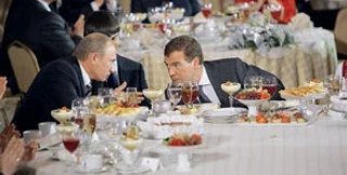 Российскую политическую элиту кормит огромный комбинат питания под названием "Кремлевский", который по совместительству работает и на Большой театр, причем поставляет продовольствие не только в актерскую столовую, но и в зрительский буфет. Продуктовые спецпайки для власть имущих остались в советском прошлом, но мясо, молоко, овощи и фрукты на главную кухню страны поступают с особых предприятий, расположенных в Подмосковье. Во время подготовки больших государственных приемов на кремлевской кухне трудятся от 35 до 70 поваров. За несколько недель до события проводится заседание кулинарного совета, в который входят функционеры из службы протокола и повара. Затем официанты отрабатывают каждое движение на генеральной репетиции – гости должны обслуживаться синхронно. Перед подачей на стол все блюда пробуют доверенные лица президента.